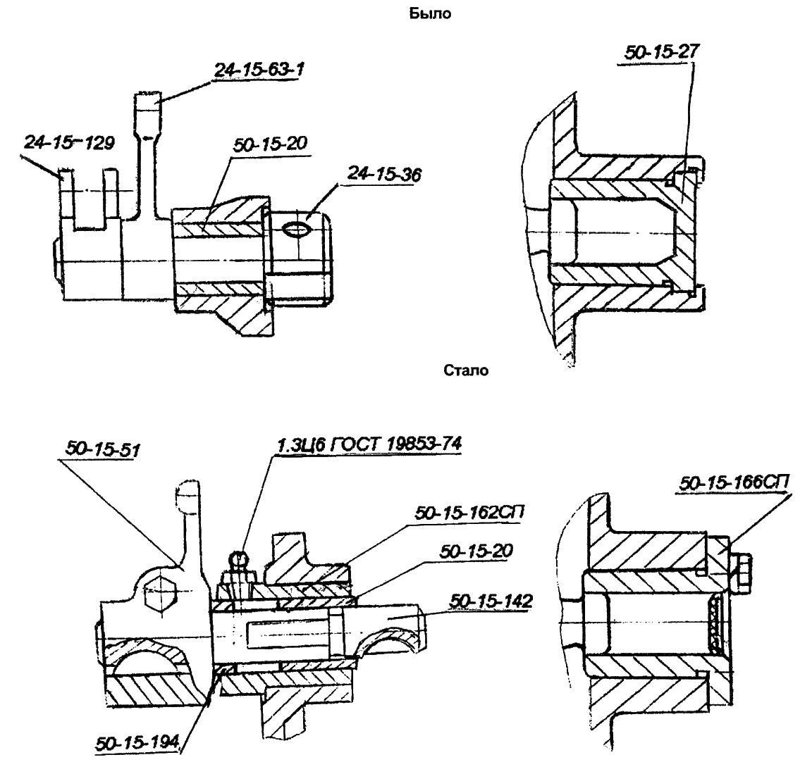 С целью снижения затрат и устранения литья разработано жесткое прицепное устройство сварной конструкции (64-51-218СП/СБ) взамен литой (50-51-118СП/СБ).