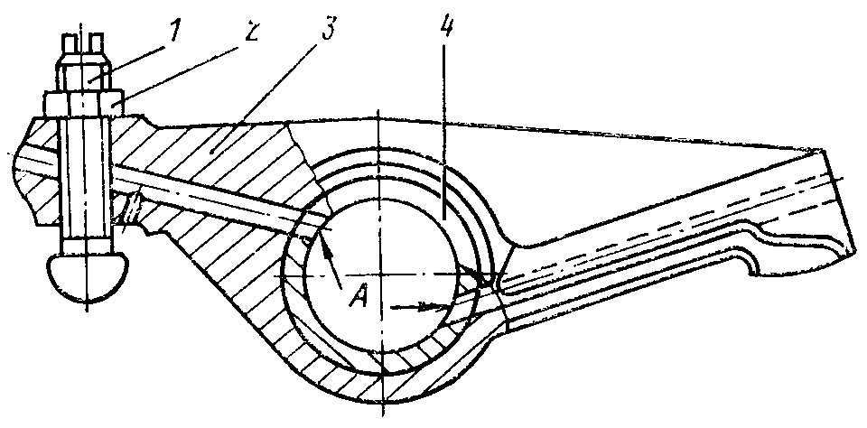 Отверните гайку 2 (рис. 51) регулировочного винта и выверните из коромысла винт 1. Выпрессовывайте втулки 4 из коромысла 3 при предельном износе внутренней поверхности втулки или ослаблении ее посадки в отверстии коромысла.
