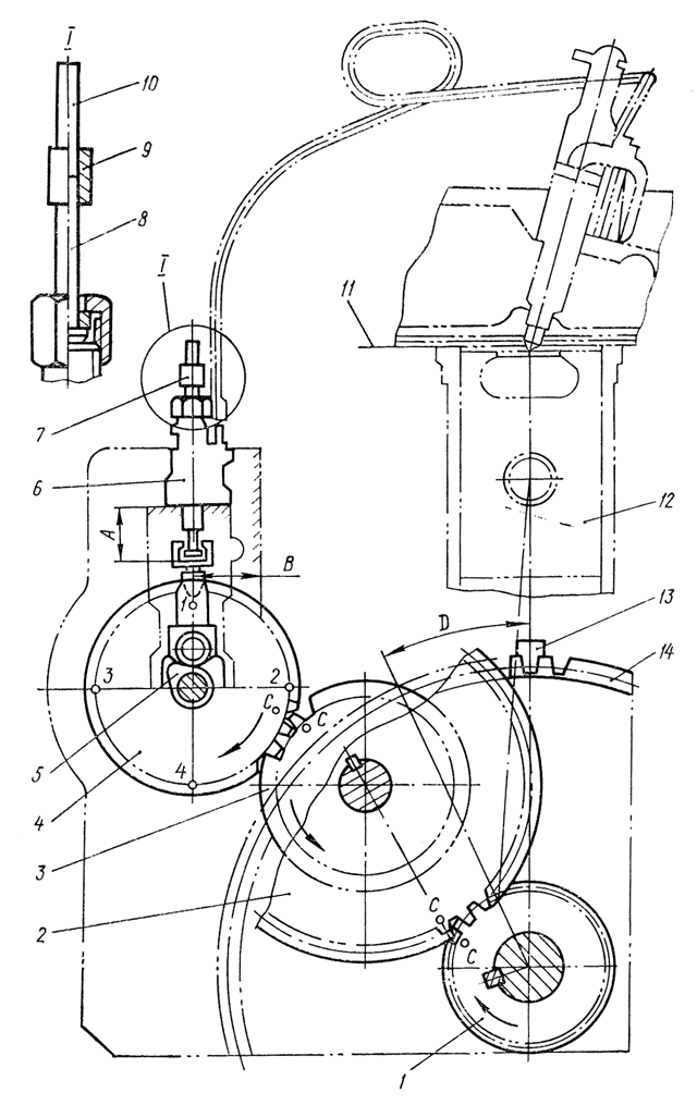 При регулировании кулачкового механизма на момент начала подачи топлива шестерню привода вращайте только по часовой стрелке, не допуская обратных поворотов.