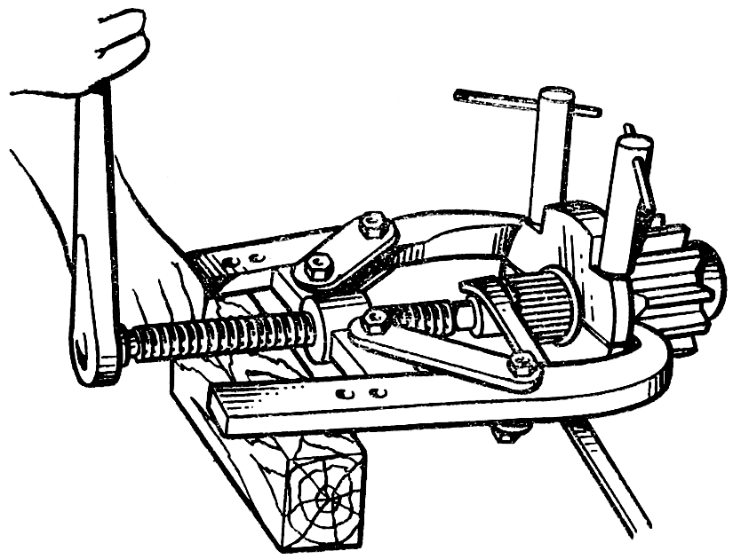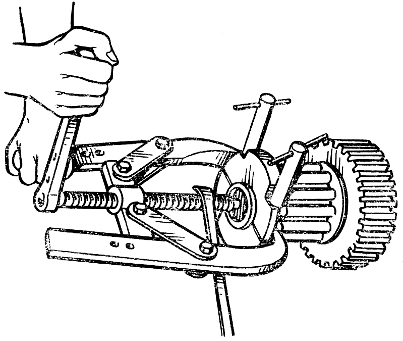 Снимите со шлицев вала шестерни резиновое кольцо 5 и выпрессуйте съемником ( рис. 263 ) внутренние кольца роликоподшипников 4 и 9 ( см. рис. 262 ), с обеих шеек вала-шестерни.