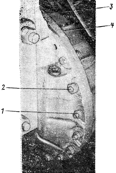 3. шестнадцатью болтами 4 с резьбой Ml6. Четырьмя болтами 3 с резьбой М12, момент затяжки болтов 40...60 Н • м (4...6 кгс • м).