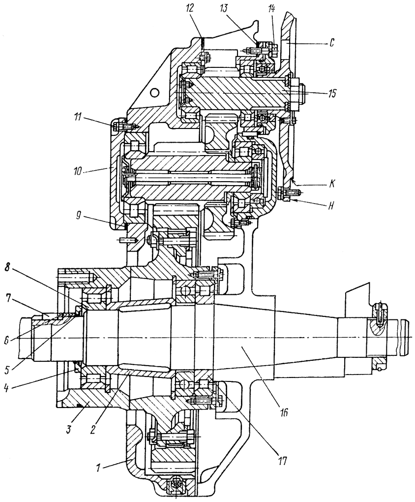 Рис. 256. Бортовой редуктор трактора Т-170.00